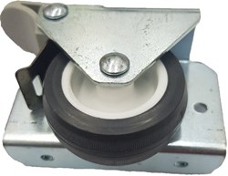 גלגל 25 מ"מ מפוליאוריטן לבן פלטה מסתובבת, מחוזק, מיסב כפול למשקל 100 ק"ג גובה כלל 50 מ"מ
