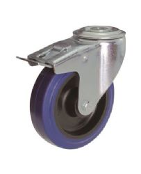 גלגל "4 מסתובב עם חור עליון - גליל גומי כחול (רזילקס), מיסב כפול + מעצור אפשרות לבורג quantity