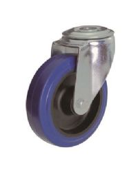 גלגל "4 מסתובב עם חור עליון – גליל גומי כחול (רזילקס), מיסב כפול + מעצור אפשרות לבורג